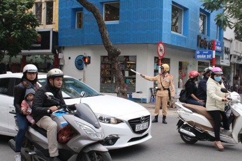 Lực lượng CSGT được tăng cường phân luồng tại các tuyến đường huyết mạch trong nội đô để đảm bảo cho người dân đi lại an toàn