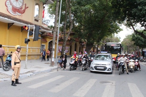 Ở những tuyến đường, ngã tư nơi gần các điểm vui chơi, đình chùa lớn, CSGT cũng được cắm chốt làm nhiệm vụ không để xảy ra ùn tắc cục bộ