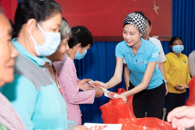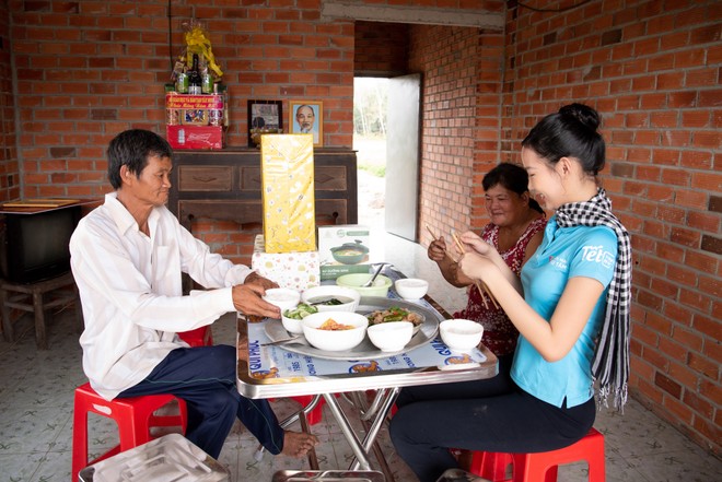 Bên cạnh đó, trong chuyến thiện nguyện lần này, nàng hậu đến từ Cần Thơ cùng mẹ của mình đã nấu một bữa ăn mừng nhà mới cho hộ dân có hoàn cảnh đặc biệt khó khăn ở Tây Ninh. Người đẹp cho biết, trước đó cô đã đến khảo sát và quyết định hỗ trợ xây nhà cho gia đình ông Cháp Panh với mong muốn đem đến một mùa Tết thật sự ấm áp, đong đầy tiếng cười và hạnh phúc cho gia đình ông vốn có cuộc sống rất khó khăn, làm nghề cắt cỏ thuê với thu nhập mỗi ngày của cả gia đình không đến 100.000 đồng và phải sống ở một căn nhà nhỏ, cũ và thiếu thốn nhiều thứ.