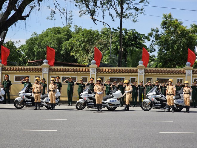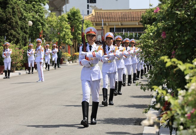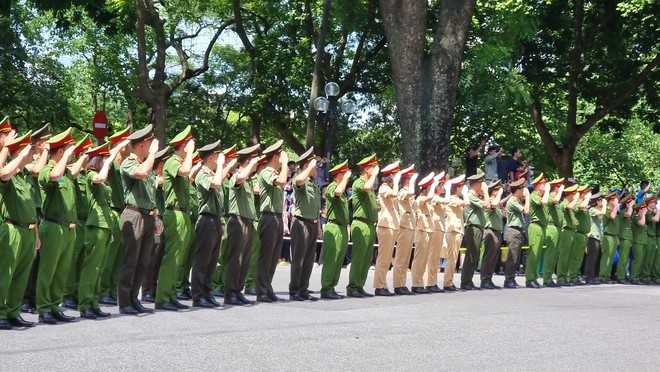 Các cán bộ chiến sĩ CAND nghiêm trang tiễn biệt Tổng Bí thư Nguyễn Phú Trọng. Ảnh: Minh Quân