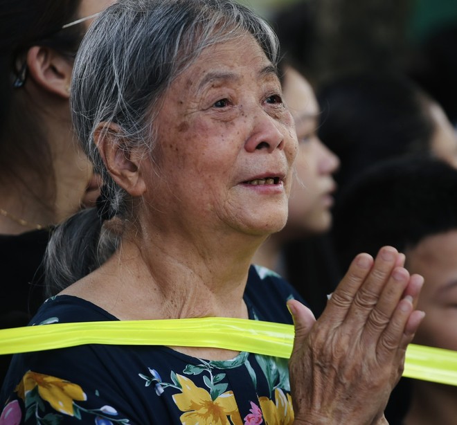 Nhiều cụ già, em nhỏ mang theo hoa xúc động tiễn biệt Tổng Bí thư Nguyễn Phú Trọng. Ảnh: Phú Khánh