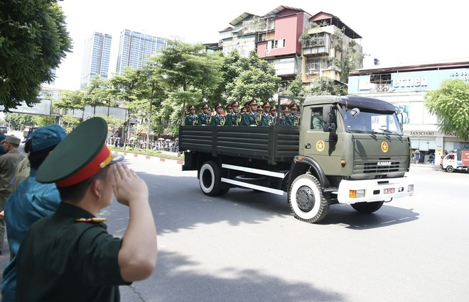 Đoàn linh xa đưa Tổng Bí thư Nguyễn Phú Trọng qua phố Tràng Tiền. Ảnh: Phú Khánh