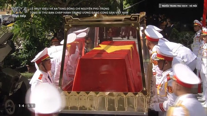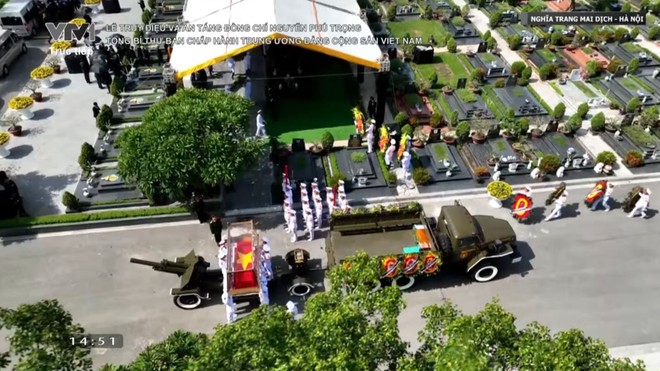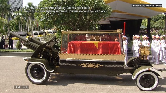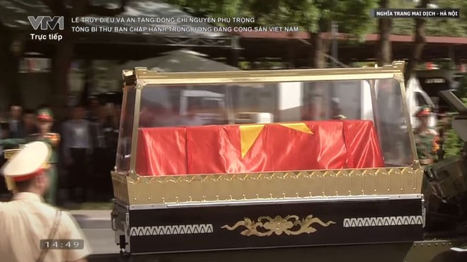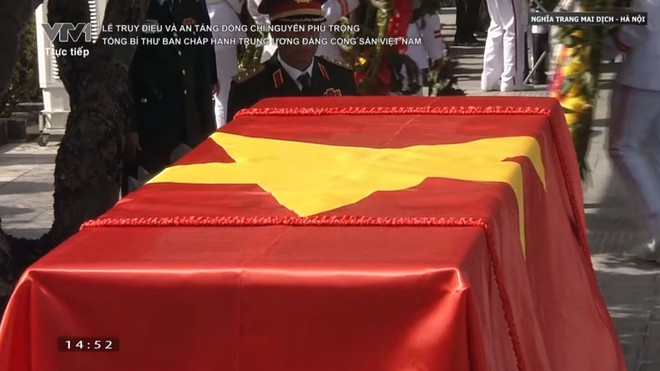 Di hài Tổng Bí thư Nguyễn Phú Trọng đã được phủ quốc kỳ Việt Nam trên linh xa