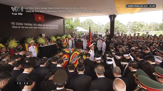 Di hài Tổng Bí thư Nguyễn Phú Trọng được hạ huyệt trong niềm tiếc thương vô hạn của người thân, các vị lãnh đạo và nguyên lãnh đạo Đảng, Nhà nước, Chính phủ, Quốc hội và nhân dân