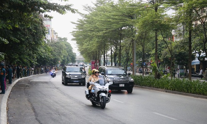 Quá trình phái đoàn di chuyển, Phòng CSGT - CATP Hà Nội cũng phối hợp với các lực lượng tổ chức phân luồng từ sớm, từ xa, hạn chế tối đa việc ùn ứ, tắc nghẽn giao thông và đảm bảo giao thông được thông suốt. Quán triệt chỉ đạo của Giám đốc CATP Hà Nội, tất cả các lực lượng tham gia bảo vệ, không riêng gì lực lượng CSGT dẫn đoàn phải giữ đúng tư thế, lễ tiết, tác phong, văn hóa ứng xử và làm việc trên tinh thần cao nhất.