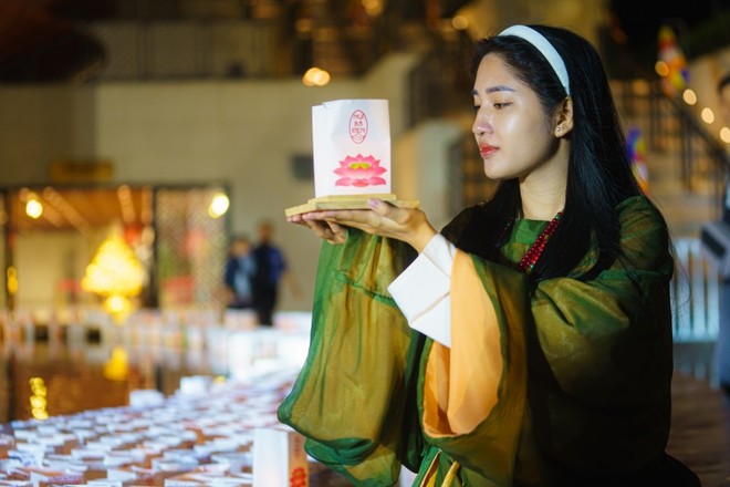 Vào buổi tối, đại lễ dâng đăng được tổ chức trang trọng và thiêng liêng là trải nghiệm mang đến cảm xúc khó quên bậc nhất cho du khách.