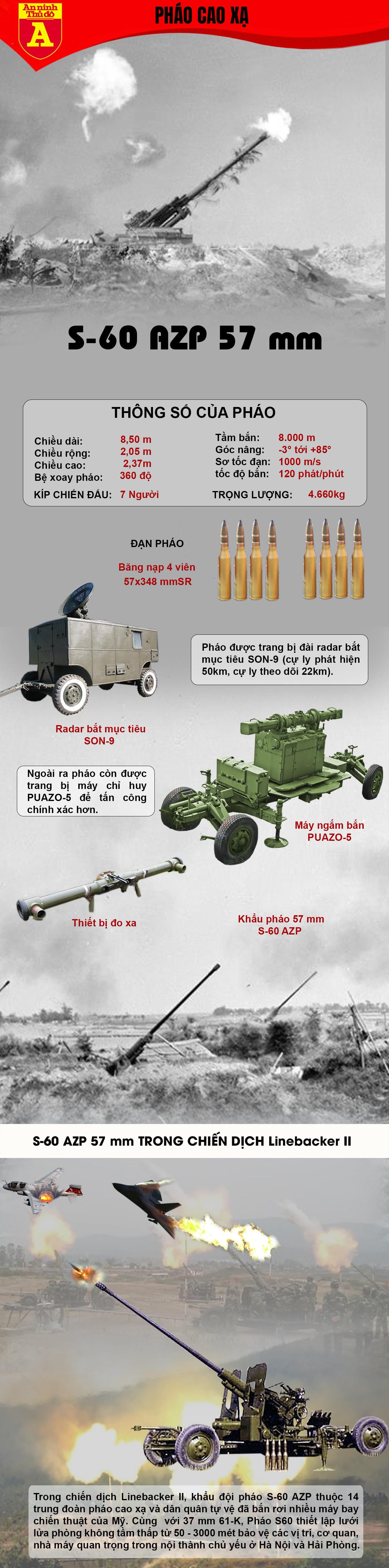 Hiện nay Việt Nam đã tiến hành nâng cấp pháo S60 cỡ nòng 57mm với các thiết bị điện tử tiên tiến giúp vũ khí này đáp ứng được yêu cầu trong tác chiến hiện tại.