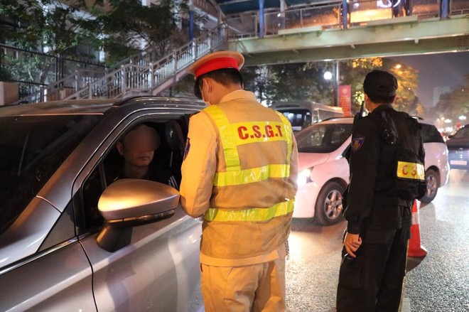 Tổ công tác Y8/141 làm nhiệm vụ tại khu vực nút giao Trần Nhân Tông - Bà Triệu. Quá trình kiểm tra, cảnh sát cũng phát hiện nhiều trường hợp vi phạm nồng độ cồn như lái xe P.M.T. điều khiển chiếc Mercedes GLC 200 vi phạm ở mức 0,243 mg/L khí thở. Với lỗi vi phạm trên, lái xe bị lập biên bản xử phạt 7 triệu đồng, tước giấy phép lái xe 11 tháng và tạm giữ phương tiện 7 ngày.