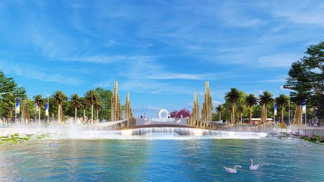 | Phối cảnh minh họa Công viên Lễ hội 9ha với trục đại lộ 1,5km và show nhạc nước đẳng cấp thế giới. Ảnh Sun Property |